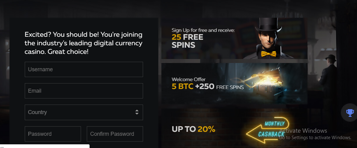 Considered as the best online Bitcoin casino by many, FortuneJack lives up to the title in several ways. The platform has one of the best no deposit bonuses amongst the current Bitcoin casinos. The no deposit bonus here is 25 free spins with a wagering of 50x. With more than 2,000 games and a sportsbook available on FortuneJack, users have an extensive catalog of games to use their free spins.